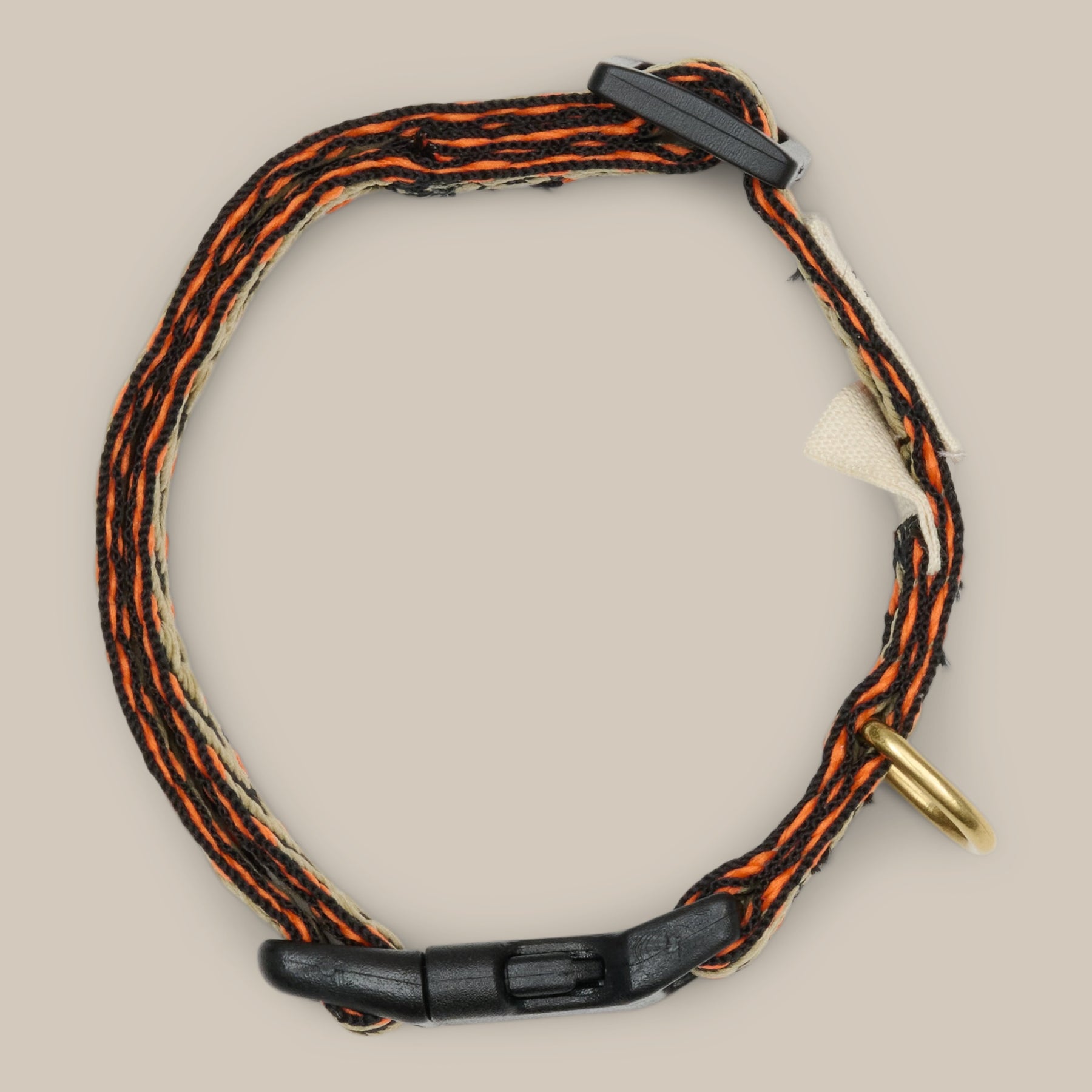 Spænder i plastik og ring til hundetegn i guld.